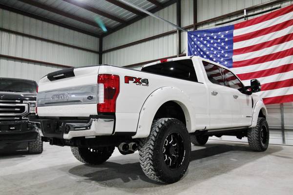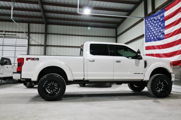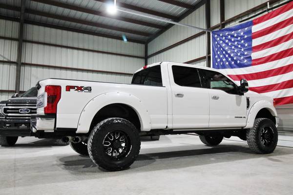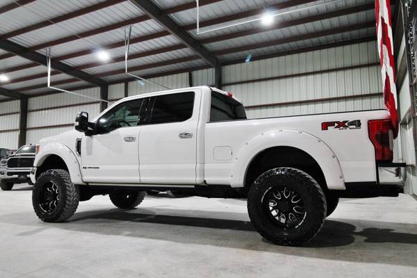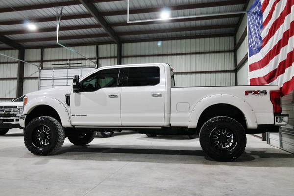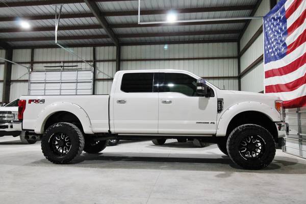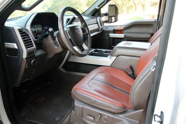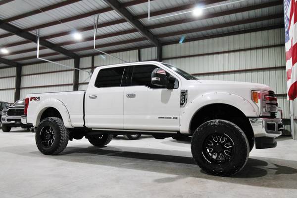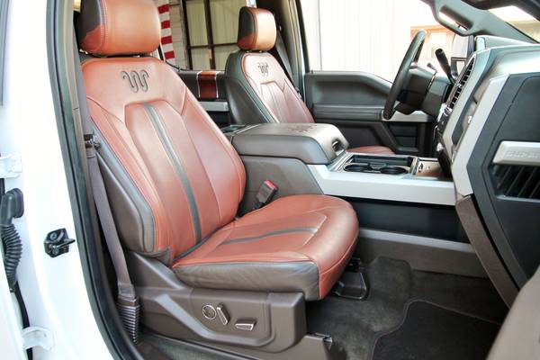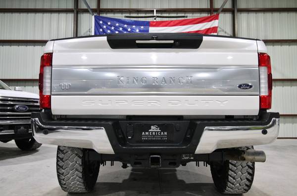 For sale is a stunning and highly optioned 2018 Ford F-250 King Ranch 4x4 powered by the 6.7L Powerstroke Diesel paired with an automatic transmission and electronic four-wheel drive. This truck has 169k miles and 29 detailed service records reported to Carfax, showing excellent maintenance history. It features a 4" lift, brand new 20" Arena Violator wheels, and nearly new 37" Nitto Trail Grapplers, giving it a powerful stance. Finished in beautiful White Platinum Metallic paint with painted-to-match fender flares, this truck is loaded with premium features including a B&W gooseneck hitch, factory power running boards, quad beam LED headlights, LED tail lights, 360 cameras, blind spot monitors, and rear air lift airbags. Inside, the King Ranch Ultimate Package offers top-tier comfort with saddle leather interior, dual power heated and cooled seats, power telescoping steering wheel, power adjustable pedals, adaptive steering, lane keep alert, and multicontour massaging seats. It also includes a fixed center console, factory touchscreen radio with navigation and backup camera, panoramic sunroof, upfitter switches, and a built-in trailer brake. With power mirrors, windows, and locks, this F-250 truly has it all—luxury, capability, and style in one exceptional package.