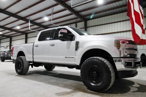 For sale is a clean and well-maintained 2019 Ford F-250 Lariat 4x4 powered by the 6.7L Powerstroke Diesel paired with an automatic transmission and electronic four-wheel drive. This one-owner truck has only 126k miles, a clean Carfax, and 18 detailed service records showing excellent maintenance. A recent Ford dealer trade, it’s leveled and rides on brand new 17" Arena Trophy wheels wrapped in 37" mud-terrain tires. The truck has never had a hitch in the bed, comes with a nice folding bed cover, and the bed itself shows very little use. Inside, the Lariat Ultimate Package delivers comfort and convenience with black leather interior, dual power heated and cooled seats, power adjustable pedals, a fixed center console, factory touchscreen radio, backup camera, passive keyless entry, and push-button start. Additional features include electronic 4x4, upfitter switches, a built-in trailer brake, power mirrors, power windows, and power locks. This F-250 is a sharp, one-owner diesel that’s been well cared for, offering both rugged performance and refined comfort.