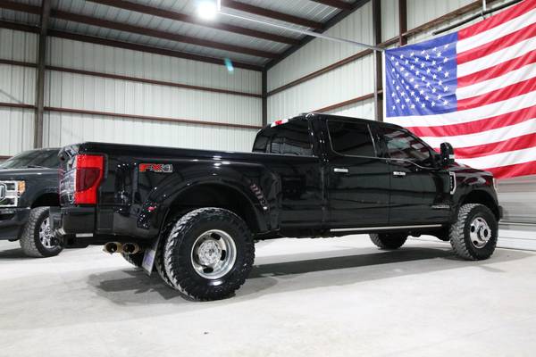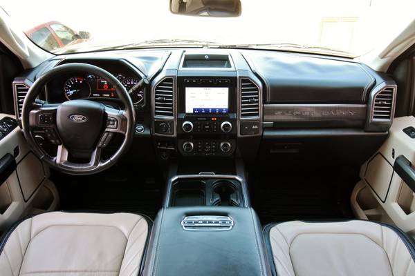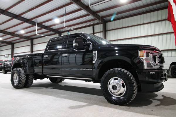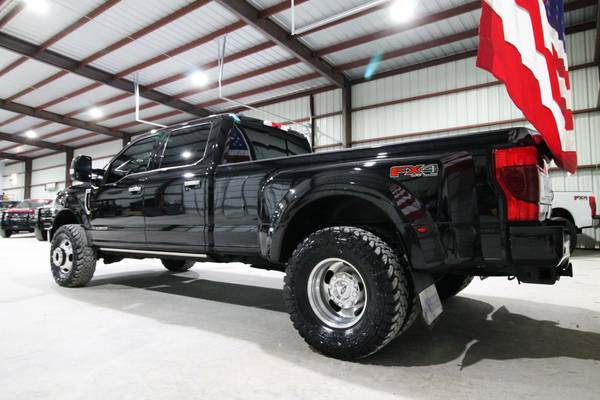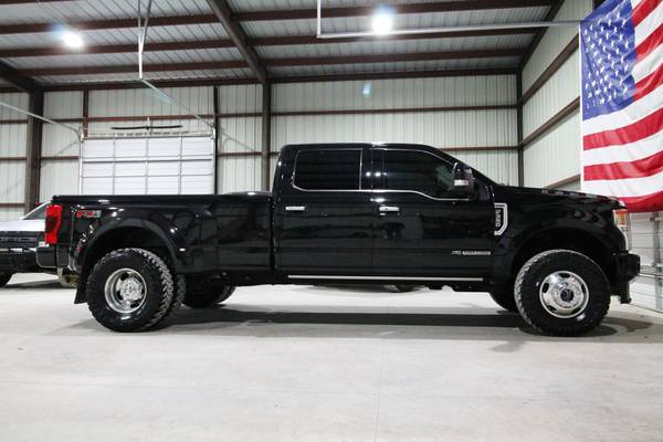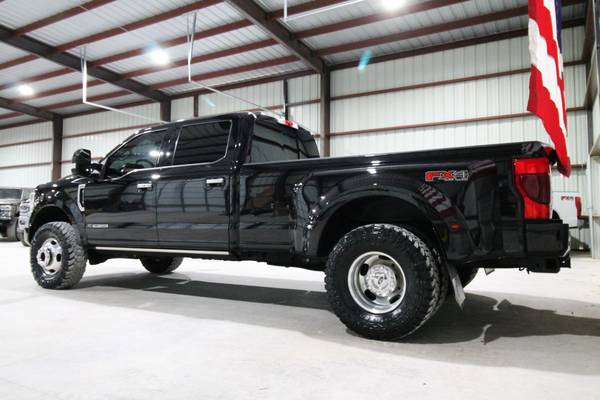 For sale is a stunning and fully loaded 2020 Ford F-350 Limited 4x4 powered by the 6.7L Powerstroke Diesel paired with an automatic transmission and electronic four-wheel drive. This one-owner Texas truck has only 134k miles, 25 detailed service records reported to Carfax, and has been locally owned and maintained since new. It’s leveled on brand new 35" Toyo MT tires, features the FX4 package, high-flow grille, and comes equipped with a factory gooseneck hitch, power running boards, quad beam LED headlights, LED tail lights, 360 cameras, and blind spot monitors. Finished in a sleek exterior, this truck truly turns heads. Inside, the Limited package offers top-of-the-line luxury with beautiful factory two-tone leather seats, dual power heated and cooled front seats, heated steering wheel, multicontour massaging seats, power telescoping steering wheel, power adjustable pedals, adaptive steering, adaptive cruise control, and lane keep alert. The cabin is loaded with technology including a factory touchscreen radio with navigation, backup and 360 cameras, a rapid heater, panoramic sunroof, and premium materials throughout. Additional features include electronic 4x4, upfitter switches, a built-in trailer brake, power mirrors, power windows, and power locks. This F-350 Limited is the pinnacle of power, comfort, and style—offering every option imaginable for work, travel, or everyday luxury driving.