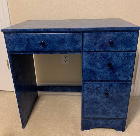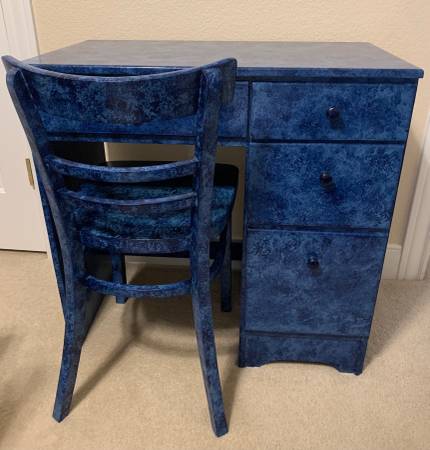 DESK & CHAIR are solid wood and very sturdy. Great for a child’s room or small space. 30”H 301/2” W 17”D We may be able to deliver, depending on your location.