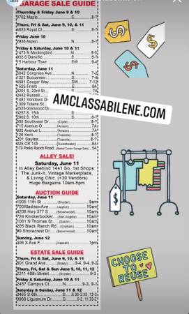 Search terms: garage sale, yard sale, moving sale, abilene texas garage sale, community sale, local deals, vintage furniture, tools, kids clothes, garagesaleguide